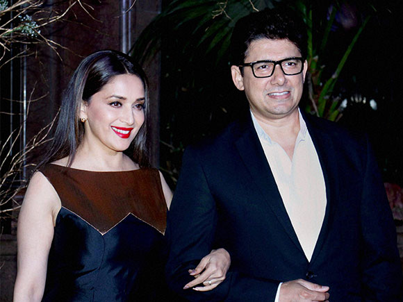 Madhuri Dixit Nene with her husband Dr Sriram Nene during the birthday celebrations of fashion designer Manish Malhotra in Mumbai