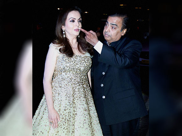 Mukesh Ambani with wife Nita Ambani at the birthday celebrations of fashion designer, Manish Malhotra in Mumbai
